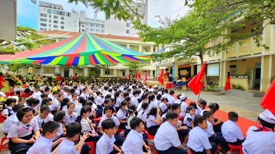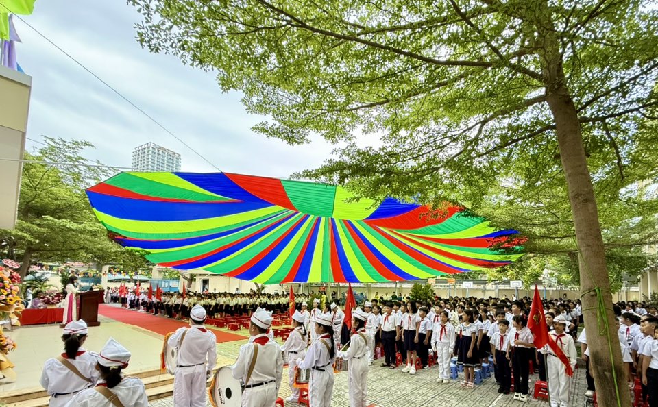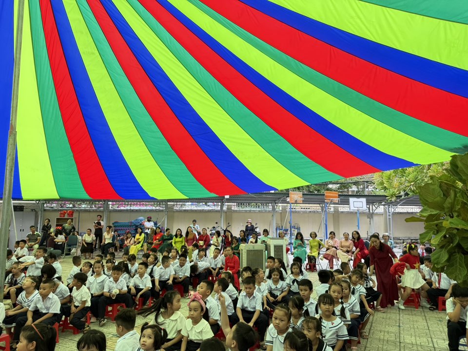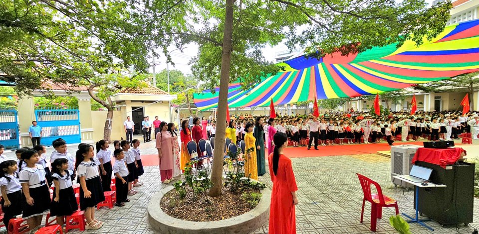 Sau buổi lễ khai giảng của nhà trường, thầy cô và các em học sinh đã cùng tham dự lễ khai giảng chung của cả nước.