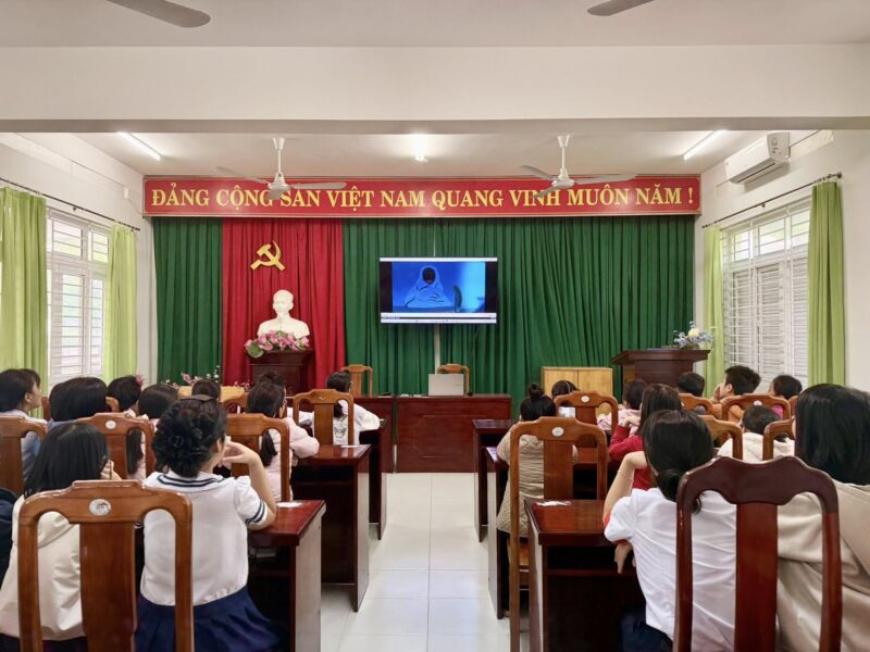 Ngoài ra các con còn xem các video phòng chống bắt nạt trên môi trường mạng, video an toàn trên mạng cho trẻ em…Các kiến thức được các em tiếp thu hào hứng.