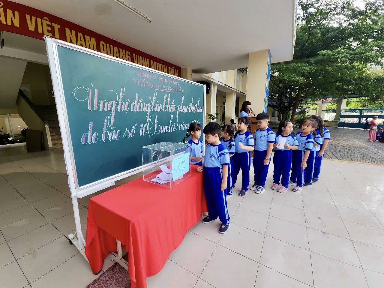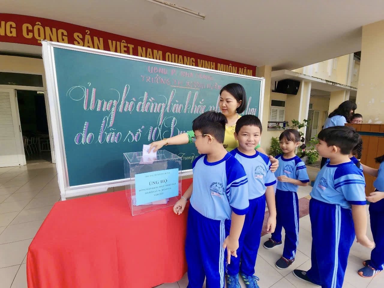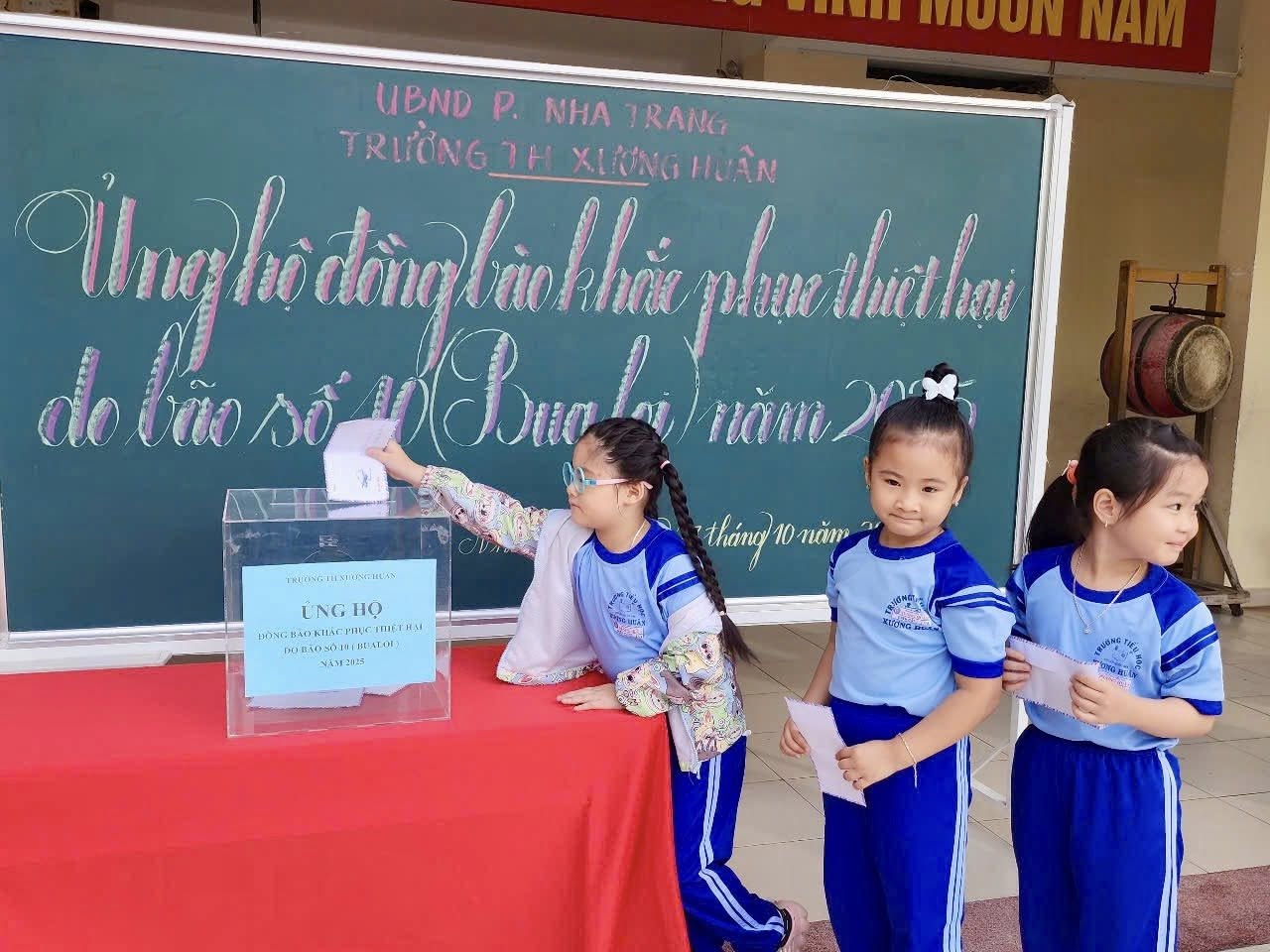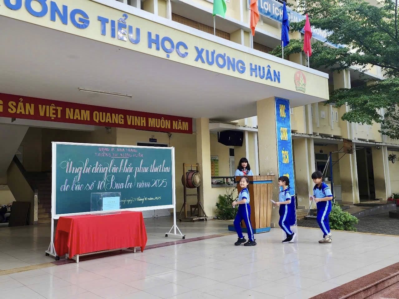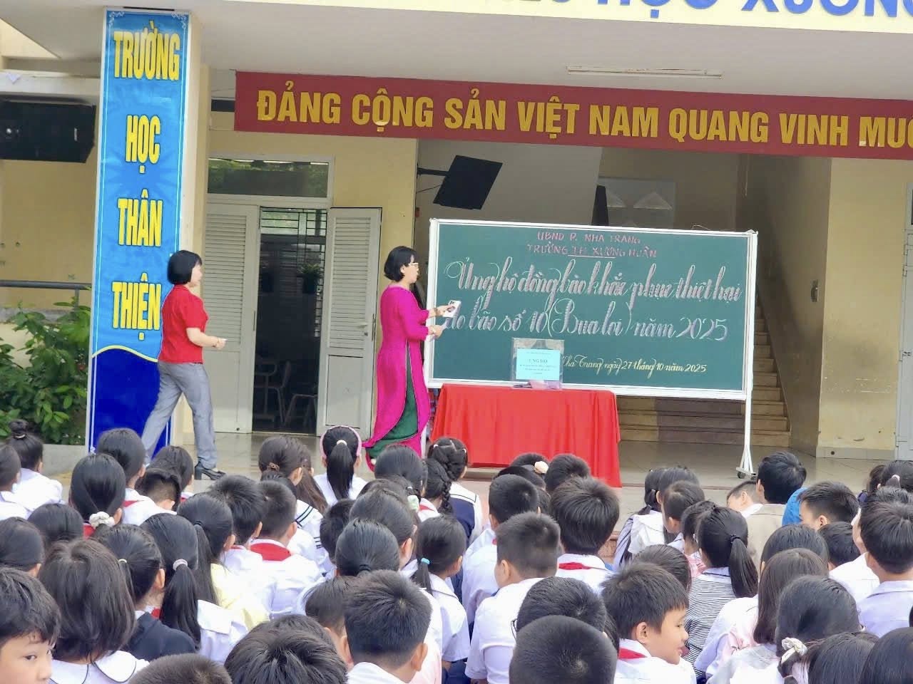 Thầy trò Trường TH Xương Huân đã phát động quyên góp mỗi thầy cô giáo một ngày lương và đồng thời phát động trong toàn Liên đội vào sáng ngày 27 tháng 10 năm 2025 đến nay tổng số tiền phát động 44.236.000 đồng (bốn mươi bốn triệu, hai trăm ba mươi sáu ngàn đồng).